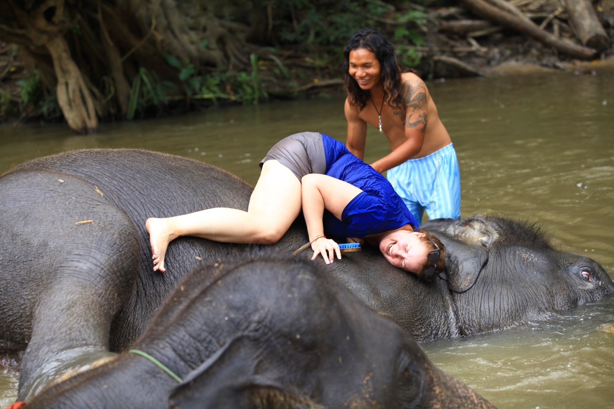 IMG_5991 Published December 23, 2015 at 5616 × 3744 in Elephants, Tigers, and Lemurs Oh my! ← Previous Next → it was difficult to stay on if the elephants decided to roll while being washed